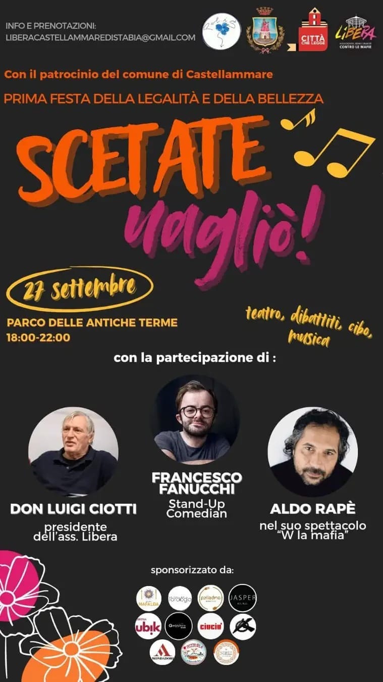 Sabato 27 settembre, alle Antiche Terme di Castellammare di Stabia, si è tenuta la prima edizione di “Scetate Uagliò – Festa della Legalità”, un’iniziativa che ho fortemente voluto e sostenuto, in qualità di Assessore alle Politiche Giovanili, come segno concreto di impegno civico e sociale.